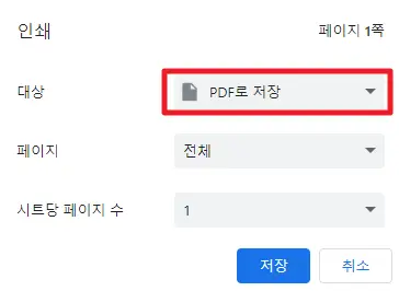 👉 대상을 프린터 또는 PDF 저장으로 선택하세요. 그리고 인쇄 또는 저장 버튼을 눌러 진행하세요.