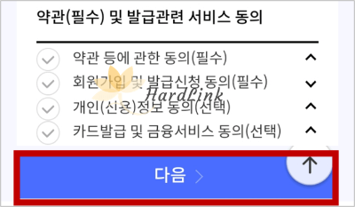 약관을 모두 확인하고, 동의할 경우 왼쪽 ( V ) 를 클릭합니다.