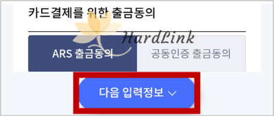 ARS 출금동의를 진행합니다. ARS 인증을 요청하면, 본인 휴대전화로 ARS 전화가 옵니다. 본인 인적 사항을 확인하고, 전화의 지시를 따르면, ARS 인증이 완료됩니다.